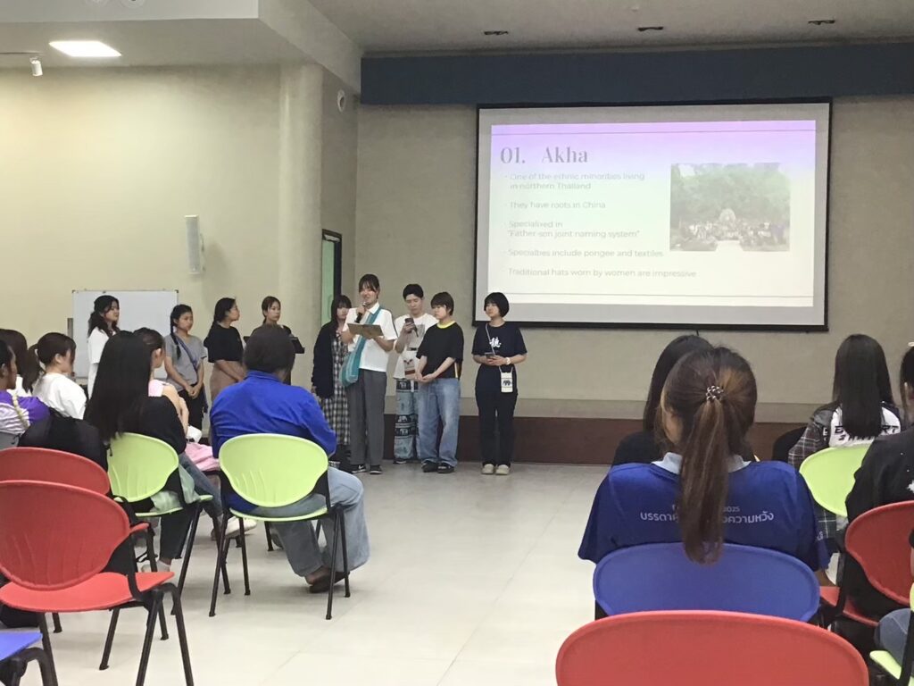 プログラムの最後には、4つのグループに分かれ、「少数民族/多文化社会」「環境保全」「農業・収益創出」「教育・保健」というテーマでグループ発表を実施。さらに、フェアウエル・ディナーでは北部タイの伝統料理を囲み、日本側・XLC側学生による文化交流ショーおよびバイ・シー儀式(重要な節目に行われるタイの伝統儀礼)を体験しました。